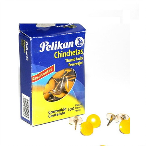 Caja de 100 chinchetas amarillas, marca Pelikan